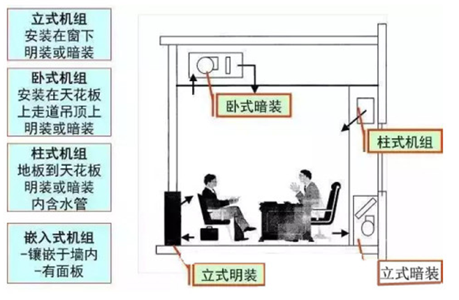 3。各種類型風機盤管裝置的安裝位置